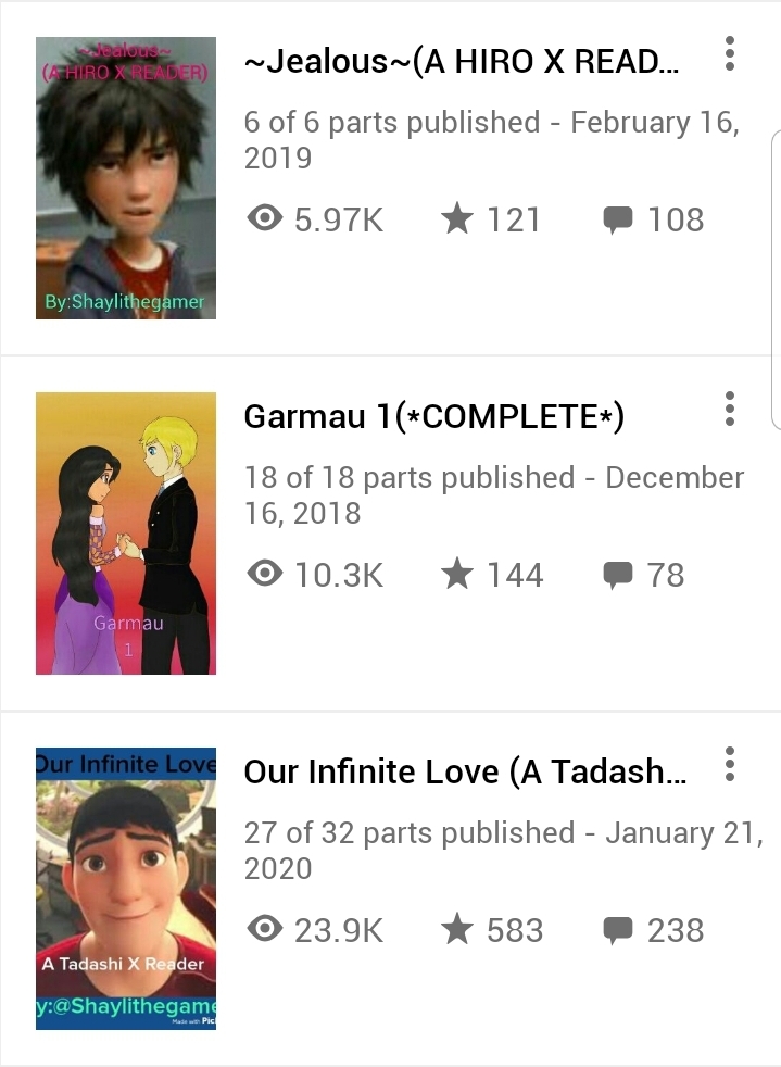 I write cringey fanfiction about the various fandoms I love. I have mainly written fanfictions with Disney characters. For example Hiro Hamada, Elsa and Tadashi Hamada. I write character x character and stuff like that. I know it’s odd to most people but I love it. I like writing x readers mainly because I am bored and can change so many things. Alternative universes are my favorite kind of writing or aus. You can create a whole new world.